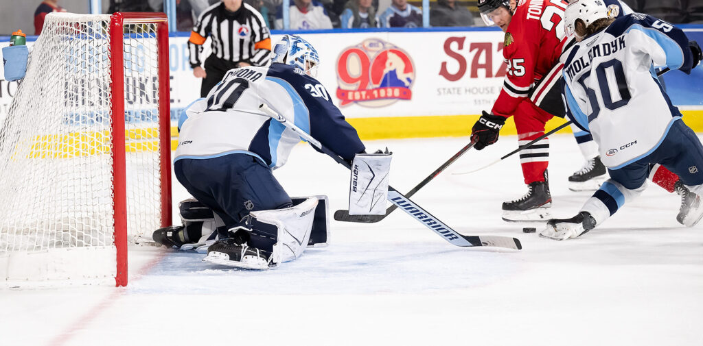 Henderson, NV— A tenacious forecheck helped the Henderson Silver Knights defeat the Milwaukee Admirals 5-1 Saturday at Lee’s Family Forum….