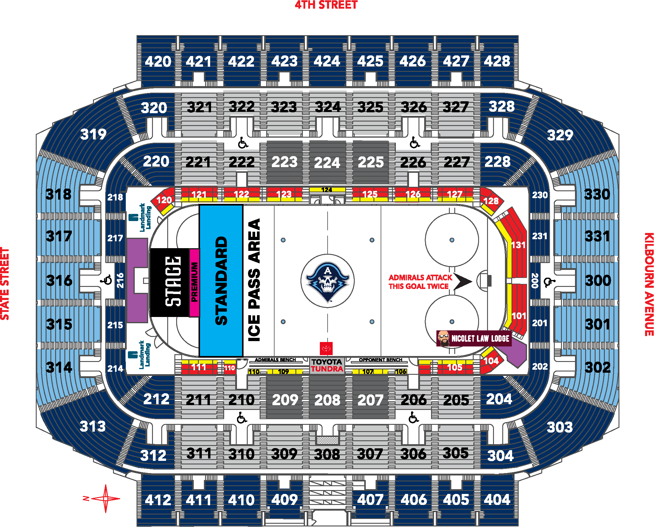 A: Ice Pass holders are able to go on to a carpeted area in front of the stage to watch Admirals post-game concerts. There are two versions of Admirals Ice Passes; Premium and Standard. Ice passes are standing-room only.