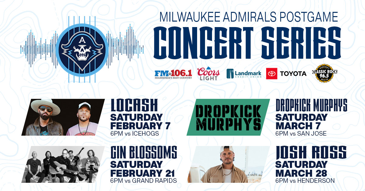 Catch live music after select Admirals games with our Concert Series — your game ticket gets you in! Want the best view? Upgrade with an Ice Pass and watch the show from right on the ice. LOCASH hits the stage postgame on February 7, with more artists to be announced soon!