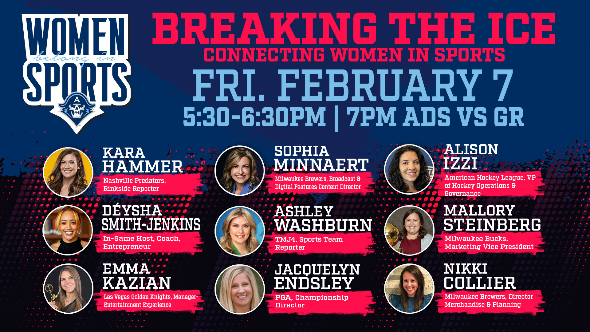 Join the Milwaukee Admirals for Breaking the Ice – Connecting Women in Sports Night on Friday, February 7th. Network with notable guests in the industry PLUS get a Women in Sports t-shirt.